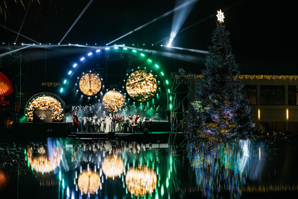 Prieš nušvintant gyvai vežaitiškių padovanotai eglutei, susirinkusiuosius linksmino šiais metais kalėdinių renginių simboliu uostamiestyje tapusi Kakė Makė, Netvarkos Nykštukas, ir, žinoma, pats Kalėdų Senelis. Pajudėti susirinkusiuosius savo dainomis ragino Monika Linkytė ir Donatas Montvydas, taip pat koncertavo Klaipėdos vaikų operos studijos, Klaipėdos karalienės Luizės jaunimo centro džiazinio dainavimo studijos ir šokių klubo UFAS dalyviai.