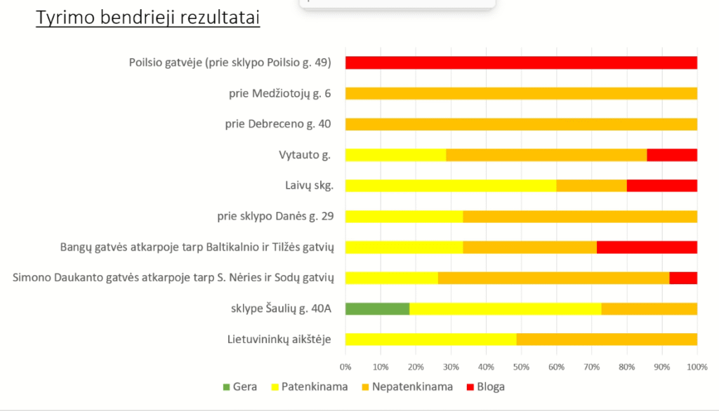 Iš visų tirtų medžių vos du buvo geros būklės, augantys Šaulių g. Tuo metu daugumos tirtų medžių būklė – patenkinama arba nepatenkinama. Tyrimo metu fiksuota ir nemažai blogos būklės medžių. Tokia būklė konstatuojama, kai medžio kamienas puvinio yra pažeistas daugiau nei yra 30 proc., tačiau kiekvienu atveju vis tiek medį patariama stebėti, užuot iškart jį šalinus.