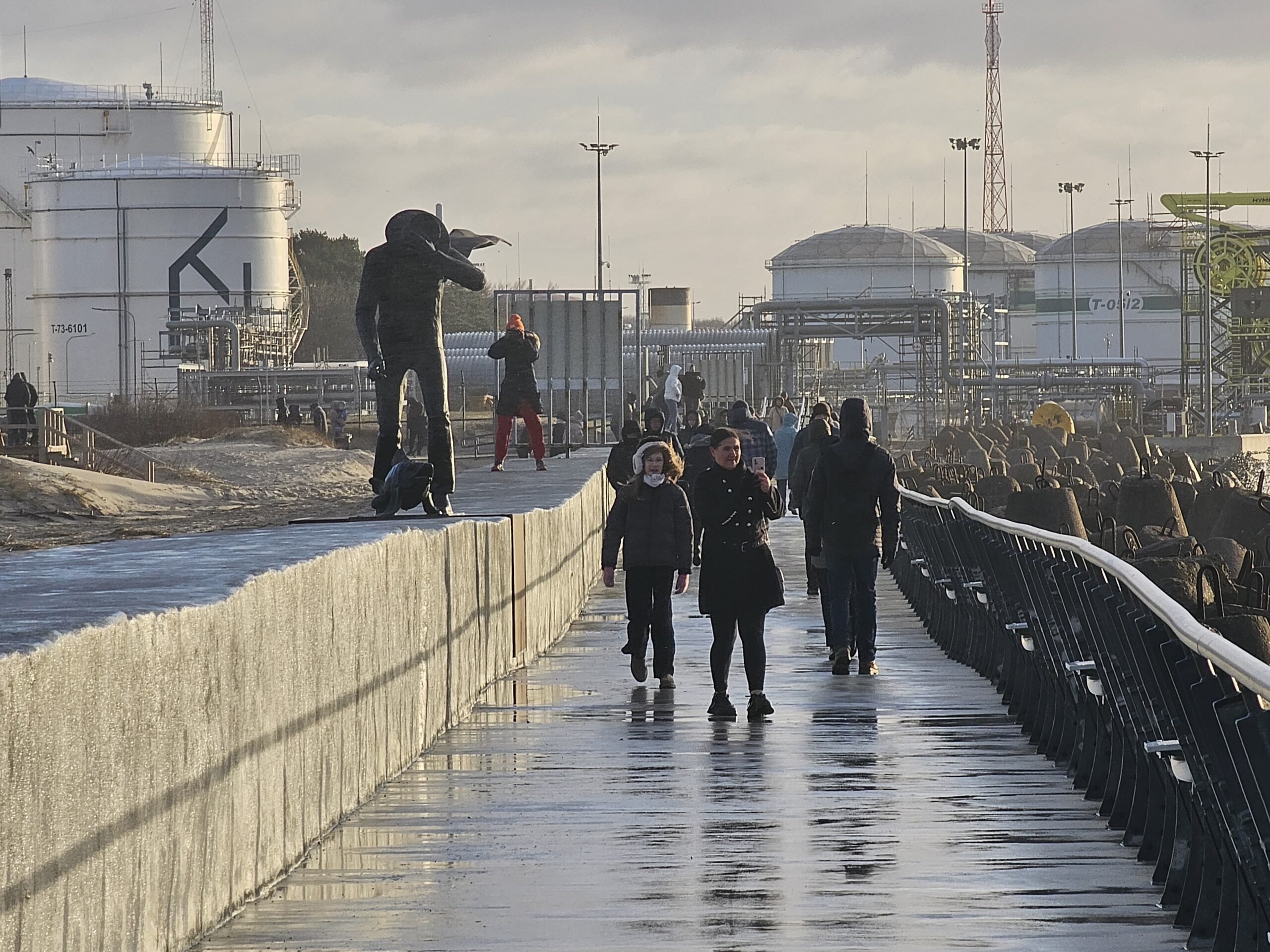 Klaipėdiečiai sekmadienio rytą traukia pasigėrėti vėju ir bangomis. Martyno Vainoriaus nuotr.