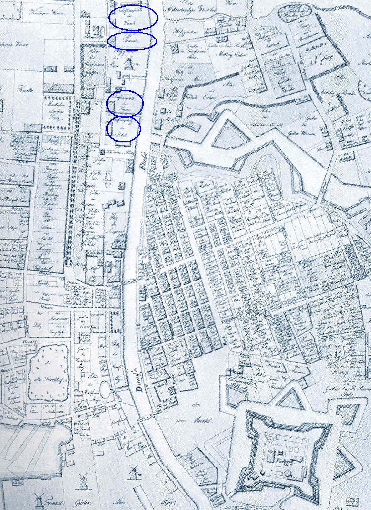 Krantinės vardo akcente – senoji miesto rotušė. XVI a. pirmoji Klaipėdos miesto rotušė buvo pastatyta prie Turgaus gatvės. XVIII a. Klaipėdos magistratas (savivalda) rinkosi name, stovėjusiame Tiltų gatvėje. 1846 m. rotušė įsikūrė išvaizdžiame gyvenamajame name Danės g. 17 (buv. Luisenstrasse 4). Pastatas anksčiau priklausė danų konsului Klaipėdoje, garsiam pirkliui Lorkui (Lorck), vėliau atiteko jo žentui Konsentijui (Consentius). Pastatas buvo dviejų aukštų, papuoštas lipdiniais. Kadangi per didįjį 1854 m. gaisrą sudegė visi miesto laikrodžiai, buvo manoma laikrodį įtaisyti virš rotušės, bet dėl lėšų stokos atsisakyta. Vietoj rotušės laikrodis buvo įkeltas į netoliese pastatytos gaisrinės bokštą. 1875–1877 pastatas rekonstruotas pagal neorenesanso (su klasicizmo elementais) stilių, paaukštintas jo II aukštas, įrengta magistrato posėdžių salė. Fasadas papuoštas trikampiu frontonu ir lipdiniais: miesto herbu, erelių figūromis, kaukėmis.