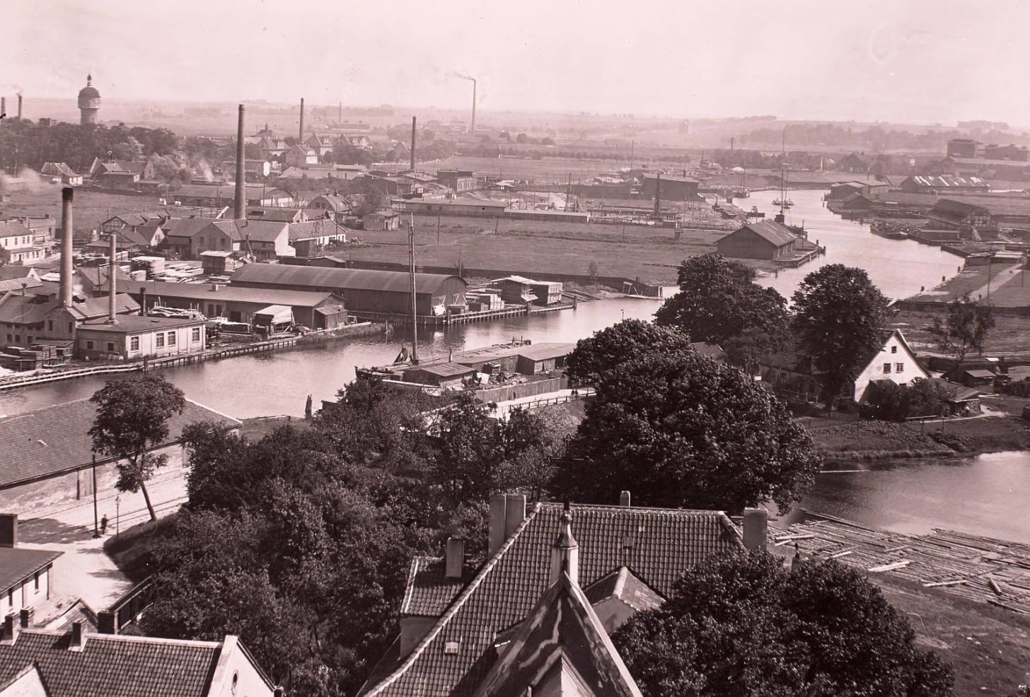XIX a. viduryje Dangės upės dešiniajame krante aukščiau Biržos tilto veikė Henrio Lobecko ir Behrendo Pieperio laivų statyklos. H. Lobeckas 1840 m. pastatė pirmąjį Klaipėdoje garlaivį „Friedrich Wilhelm IV“. Visgi produktyviausias Klaipėdos laivų statytojas buvo B. Pieperis, 1837–1873 m. bėgyje pastatęs 144 laivus – burlaivius (barkai, brigai, škunos) ir garlaivius. Apdirbtos miško medžiagos eksporto piko metu (grubiai 1800–1860 m. laikotarpis) buvo metų kai Klaipėdiečių pirklių ir jūrininkų laivynas sudarė virš 100 jūrinių burlaivių. Klaipėdos laivai su kroviniais pasiekdavo ne tik svarbiausių prekybos partnerių anglų uostus, bet ir tolimuosius Šiaurės ir Pietų Amerikos ar Australijos krantus. 1876 m. Klaipėdoje pastatytas paskutinis burlaivis, 1899 m. klaipėdiečiai beturėjo tik vienintelį jūrinį burinį laivą – barką „Express“. XX a. pradžioje burlaivius iš laivybos verslo galutinai išstūmė garlaiviai. Neprisitaikius prie garu varomų laivų metaliniais korpusais gamybos laivų statyklos dešiniajame Dangės krante palaipsniui sustabdė veiklą. XX a. pradžioje garlaivių, o vėliau ir motorlaivių statyba bei remonto paslaugos persikėlė prie Kuršių marių, greta Dangės upės Pietinio rago krantinės.