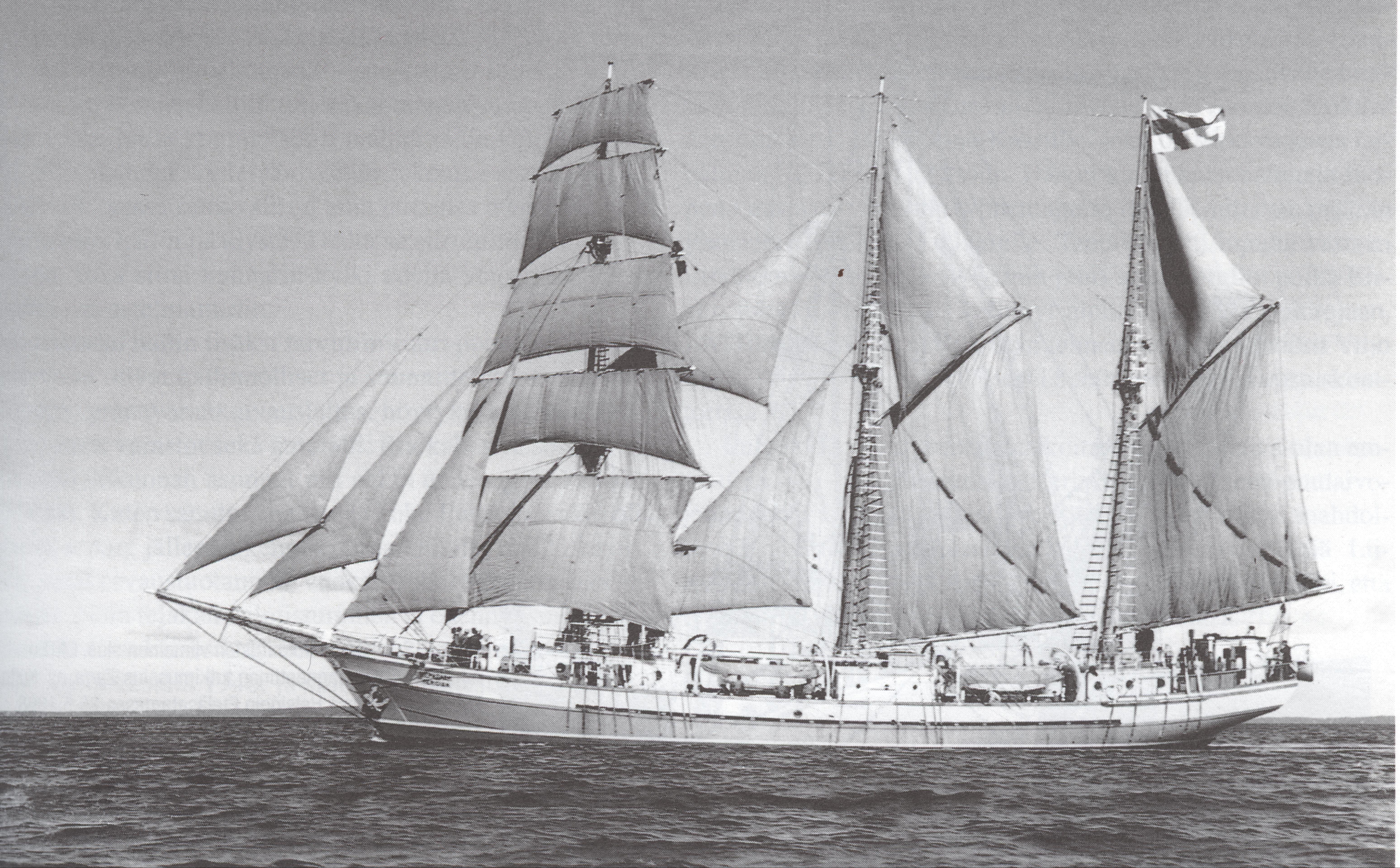 Klaipėdos jūreivystės mokyklos mokomasis burlaivis „Meridianas“ buvo pastatytas 1948 m. Suomijoje (Turku laivų statykloje). Suomiai už nepralaimėtą Žiemos karą ir išsaugotą nepriklausomybę Tarybų Sąjungai mokėjo kontribucijas. Dalis jų – 90 po Antrojo pasaulinio karo pastatytų mokomųjų ir prekybinių tristiebių burlaivių (17 barkentinų ir 73 škunos).