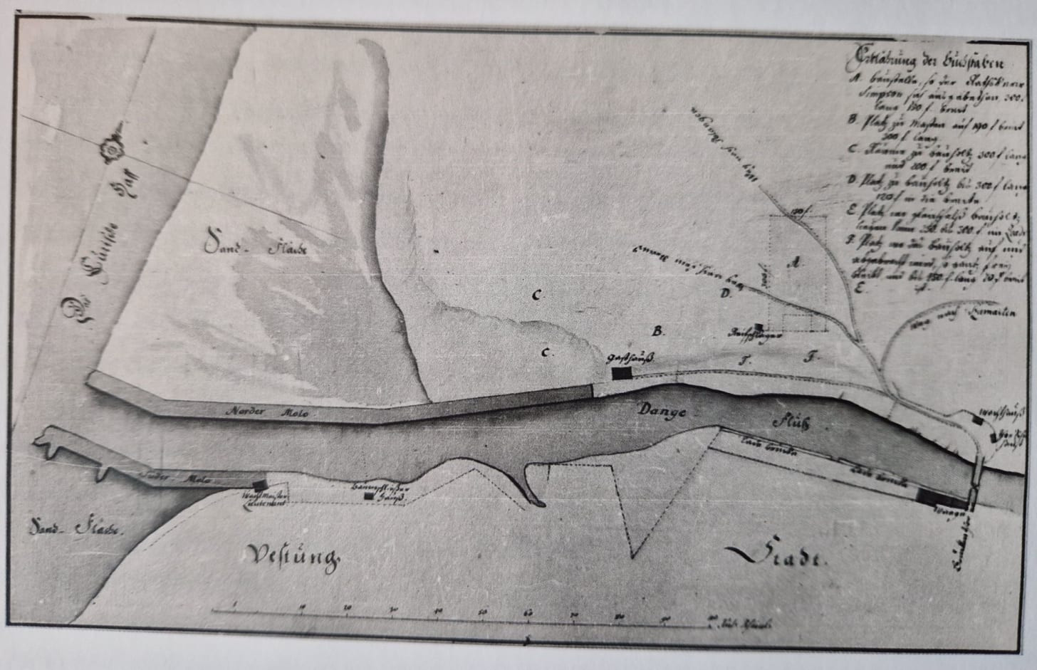 XIII a. viduryje Klaipėdos pilis ir gyvenvietė jos prieigose kūrėsi Dangės upės žiotyse – keliose natūraliai susiformavusiose salose prie marių. Pilies vieta keitėsi, salos sujungtos į vientisą sausumo plotą, prie pagrindinės upės atšakos įrengtos krantinės pirmajam uostui. Iki XVIII a. Klaipėdos uostas glaudėsi siauroje upės vagoje, šalia pilies ir senamiesčio kairiajame krante bei naujamiesčio dešiniajame krante. Uostas plėtėsi aukštyn Dange, bet aptarnavo faktiškai tik pilies ir nedidelio miesto poreikius. O juk dar pilies įkūrėjai Klaipėdą regėjo kaip per regioną keliaujančių prekių (tranzito) krovos centru. Plėstis uosto veikloms (pvz. į Kuršių marias) ilgą laiką trukdė geopolitiškai neparanki šiauriausio Vokiečių ordino valdų miesto padėtis. Ir pasaulietinės Prūsijos kunigaikštytės laikais Klaipėdos pirkliams sunkiai sekėsi įsitvirtinti jūrinėje prekyboje.