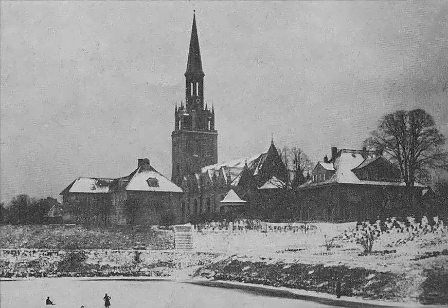 Fabrike prie Dangės buvo perdirbami iš Lietuvos ir Lenkijos suvežti pelenai stiklo gamybai, daromas potašas eksportui. Natūraliai priemiestis imtas vadinti Pelenyno vardu. Pelenyne daugiausiai gyveno darbininkai, kurie be įprastų darbų taip pat užsiėmė žvejyba, beveik kiekviena šeima turėjo valtį. Priemiestis sudegė 1854 m. per Didįjį miesto gaisrą, bet Pelenyno pavadinimas išliko iki Antrojo pasaulinio karo. XIX a. pabaigoje Pelenynas tapo klaipėdiečių pramogų vieta – užšalusiuose gynybiniuose grioviuose ir Dangėje buvo čiuožinėjama, nuo 1924 m. čia pradėta žaisti ir ledo rutulį, kurio aikštelės buvo netoli ravelino.