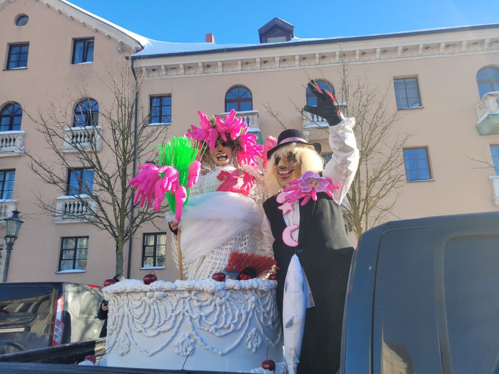 Sekmadienio popietę gausiai į Teatro aikštę susirinkę Užgavėnių švęsti miestiečiai tapo žymių influencerių Alės Instagramės ir Muko Feizbuko vestuvių liudininkais.