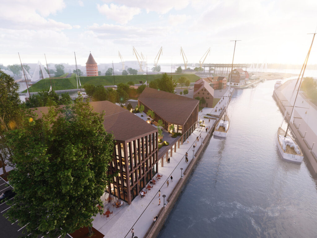 „Pastatas integruotas į esamą istorinių pastatų krantinės išklotinę, kartu suformuoti vizualinius ryšius su Klaipėdos pilies bastionų kompleksu. Tūrių sudalinimu ir nuožulnių stogų pagalba formuojami vizualiniai ryšiai nuo upės į bastionų kompleksą. Siekiame, kad projektuojamas pastatas darniai įsilietų tiek į gerai matomą, kultūros paveldo ir istoriniu požiūriu vertingais pastatais užstatytą Dangės kairįjį krantą, tiek suteiktų galimybę apžvelgti toliau esančią piliavietę. Svarbus vizualinis ryšys nuo naujamiesčio krantinės pradžios kerta projektuojamą tūrį. Tai įtakojo tūrio skaidymą, skaidymo formą ir plotį, siekiant atverti pilies Didžiojo bokšto vaizdą. Pastato skaidymas pasitarnavo ir integralumo bei masteliškumo paieškose, taikantis prie gretimo užstatymo. Nuožulnūs stogai ir forma įsilieja į istorinį krantinės siluetą, planinė kompozicija reaguoja į greta esančią krantinę ir bastionų kompleksą. Skaidrūs, atviri fasadai vizualiai apjungia vidaus ir išorės erdves. Aplinkos vizualas ir vidaus interjeras sudaro bendrą kompozicinę visumą“, – taip savo sprendimus motyvuoja projektinių pasiūlymų autoriai.
