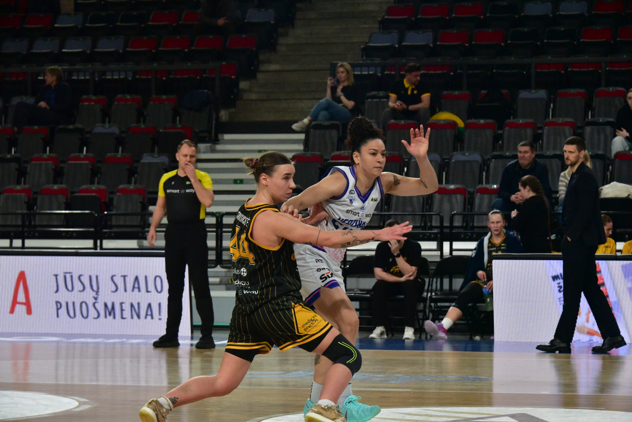 Pusfinalio seriją uostamiesčio komanda laimėjo 2-0. Pirmoje tarpusavio akistatoje klaipėdietės triumfavo 76:56.