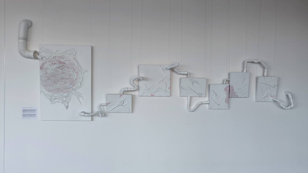 2025 m. studentų vizitas į Jūros tyrimų institutą tapo šio projekto pradžia. Ten jie susipažino su laboratorijomis, tyrimų kryptimis, mikroskopavimo procesu, fitoplanktono ir makrobestuburių mėginiais. Instituto direktorė dr. Zita Rasuolė Gasiūnaitė tuomet pabrėžė mintį, kuri šiandien skamba kaip parodos šerdis: „Bioįvairovė nėra dekoras. Tai – mūsų išlikimo mechanizmas.“ Ši frazė, iš pirmo žvilgsnio mokslinė, studentų darbuose virto vizualine intuicija, organišku mąstymu, formų pulsavimu, kuris ne tik atspindi, bet ir interpretuoja gyvybės ritmą.