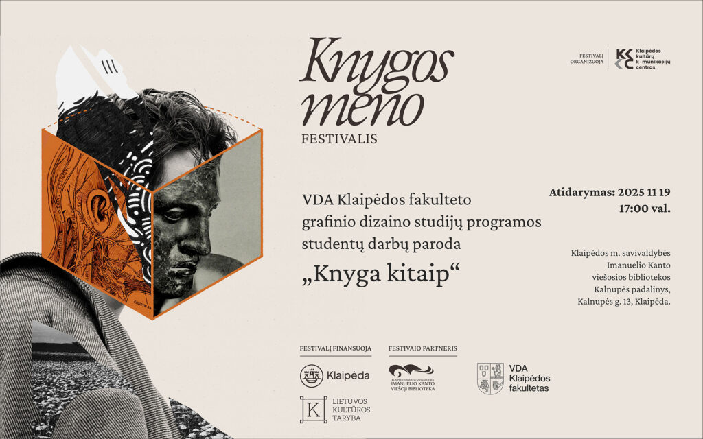 Lapkričio 19 d., 17 val., Klaipėdos m. savivaldybės Imanuelio Kanto viešosios bibliotekos Kalnupės padalinyje (Kalnupės g. 13) atidaroma Vilniaus dailės akademijos (VDA) Klaipėdos fakulteto grafinio dizaino studijų programos paroda „Knyga kitaip“.